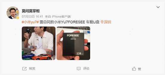 这个月也可以看到车主们陆续在各地提车,纷纷晒出了自己的提车礼盒和这款来自江波龙的FORESEE行车记录U盘。